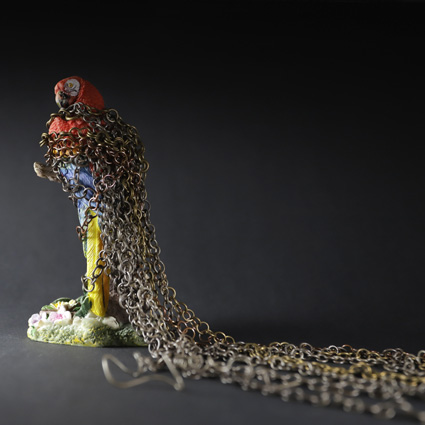 jewellery sculpture (brass, copper, oxidized sterling silver, a plastic figurine)